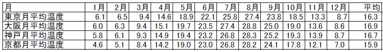 東京大阪神戸京都の月別平均気温