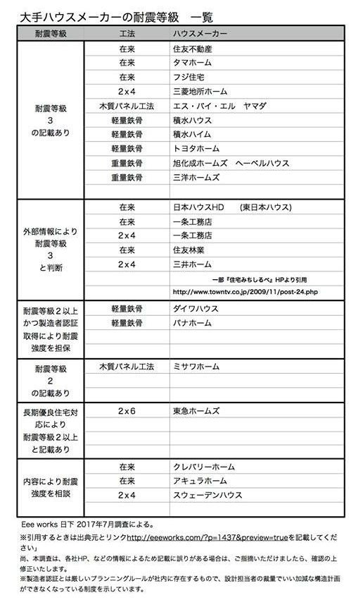 住宅メーカー各社の耐震等級